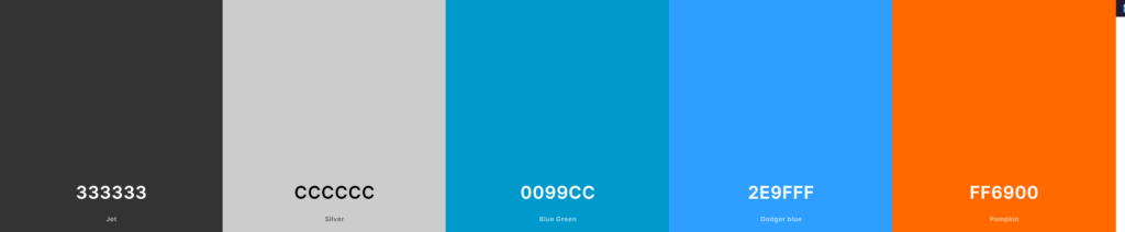 - #FF6900 – An Orange to contrast the blues and greys to callout any actions